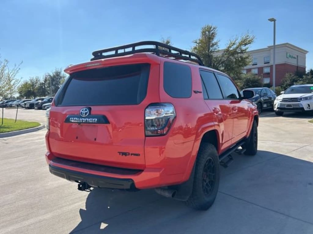 At Pat Lobb's Toyota of McKinney, buying a car is as easy as 1-2-3! We have been serving McKinney, Texas for several years! We invite our neighbors of Allen, Plano, Richardson, Dallas, Prosper, The Colony, Frisco and beyond for the best service, selection and deals in the D/FW area! TRD Pro Package (Black Lug Nuts, Dual Zone Auto Climate Control, Fog Lights, Fox Shocks, Garage Door Opener, Heated Outside Rear-View Mirrors, Moonroof w/Tilt Up & Slide, Multi-Terrain Back Monitor, Roof Rack, TRD Pro All Weather Floor Liner, TRD Pro Badging, TRD Pro Exhaust, TRD Shift Knob, and Wheel Locks), Toyota Gold Certified Certified, 4WD, Graphite Artificial Leather, 15 Speakers, 3.727 Axle Ratio, 4-Wheel Disc Brakes, ABS brakes, Air Conditioning, Alloy wheels, AM/FM radio: SiriusXM, Anti-whiplash front head restraints, Apple CarPlay/Android Auto, Auto High-beam Headlights, Auto-dimming Rear-View mirror, Automatic temperature control, Brake assist, Bumpers: body-color, Compass, Driver door bin, Driver vanity mirror, Dual front impact airbags, Dual front side impact airbags, Electronic Stability Control, Emergency communication system: Safety Connect (1-year trial), Front anti-roll bar, Front Bucket Seats, Front Center Armrest, Front dual zone A/C, Front fog lights, Front reading lights, Front wheel independent suspension, Garage door transmitter: HomeLink, Heated door mirrors, Heated Front Bucket Seats, Heated front seats, Illuminated entry, Knee airbag, Leather Shift Knob, Low tire pressure warning, Navigation System, Outside temperature display, Overhead airbag, Overhead console, Panic alarm, Passenger Airbag Sensor, Passenger door bin, Passenger vanity mirror, Power door mirrors, Power driver seat, Power moonroof, Power passenger seat, Power steering, Power windows, Radio: Premium Audio w/JBL, Rear anti-roll bar, Rear seat center armrest, Rear window defroster, Rear window wiper, Remote keyless entry, Roof rack, Security system, SofTex Seat Trim, Speed control, Speed-sensing steering, Split folding rear seat, Spoiler, Steering wheel mounted audio controls, Tachometer, Telescoping steering wheel, Tilt steering wheel, Traction control, Trip computer, Variably intermittent wipers, and Wheels: 17" Matte Black Flow-Formed TRD Alloy.