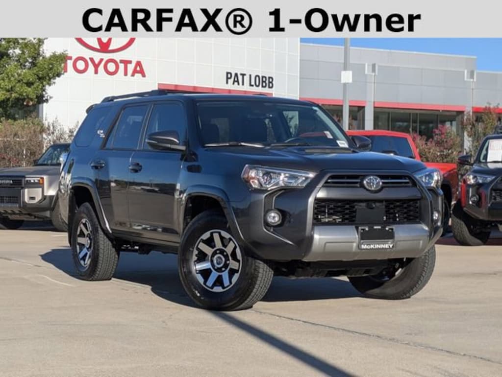 At Pat Lobb's Toyota of McKinney, buying a car is as easy as 1-2-3! We have been serving McKinney, Texas for several years! We invite our neighbors of Allen, Plano, Richardson, Dallas, Prosper, The Colony, Frisco and beyond for the best service, selection and deals in the D/FW area! Off Road Package (Black Roof Rails and Heated Outside Rear-View Mirrors), Off Road Premium Plus Package (Garage Door Opener and Multi-Terrain Back Monitor), 4WD, Black/Graphite w/SofTex Seat Trim, 3.727 Axle Ratio, 4-Wheel Disc Brakes, 8 Speakers, ABS brakes, Air Conditioning, Alloy wheels, AM/FM radio: SiriusXM, Anti-whiplash front head restraints, Apple CarPlay/Android Auto, Auto High-beam Headlights, Auto-dimming Rear-View mirror, Brake assist, Bumpers: body-color, Compass, Driver door bin, Driver vanity mirror, Dual front impact airbags, Dual front side impact airbags, Electronic Stability Control, Emergency communication system: Safety Connect (1-year trial), Exterior Parking Camera Rear, Front anti-roll bar, Front Bucket Seats, Front Center Armrest, Front fog lights, Front reading lights, Front wheel independent suspension, Garage door transmitter: HomeLink, Heated door mirrors, Heated Front Bucket Seats, Heated front seats, Illuminated entry, Knee airbag, Leather Shift Knob, Low tire pressure warning, Navigation System, Outside temperature display, Overhead airbag, Overhead console, Panic alarm, Passenger Airbag Sensor, Passenger door bin, Passenger vanity mirror, Power door mirrors, Power driver seat, Power passenger seat, Power steering, Power windows, Radio: Premium Audio w/Dynamic Navigation, Rear anti-roll bar, Rear seat center armrest, Rear window defroster, Rear window wiper, Remote keyless entry, Roof rack: rails only, Security system, SofTex Seat Trim, Speed control, Speed-sensing steering, Split folding rear seat, Spoiler, Steering wheel mounted audio controls, Tachometer, Telescoping steering wheel, Tilt steering wheel, Traction control, Trip computer, Turn signal indicator mirrors, Variably intermittent wipers, and Wheels: 17" Unique 7-Spoke Off-Road Alloy.