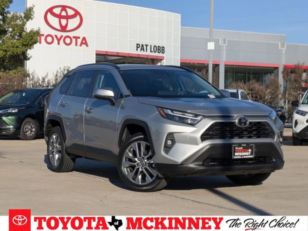 At Pat Lobb's Toyota of McKinney, buying a car is as easy as 1-2-3! We have been serving McKinney, Texas for several years! We invite our neighbors of Allen, Plano, Richardson, Dallas, Prosper, The Colony, Frisco and beyond for the best service, selection and deals in the D/FW area! XLE Premium Grade Technology Package (Blind Spot Monitor, Front & Rear Parking Assist w/Automated Braking, Intelligence Clearance & Back Sonar, and Qi-Compatible Wireless Smartphone Charging), XLE Premium Grade Weather Package (3 Spoke Leather Heated Steering Wheel, Driver Seat w/2-Position Memory Function, Front Seat Heating, and Rain Sensing Front Wipers), XLE Premium Package (Front Door Smart Key System w/Push Button Start, LED Front Fog & Driving Lamp, and Tilt & Slide Moon Roof), RAV4 XLE Premium, Toyota Gold Certified Certified, 4D Sport Utility, 2.5L 4-Cylinder DOHC Dual VVT-i, 8-Speed Automatic, AWD, Silver Sky, Black Artificial Leather, 3 Spoke Leather Steering Wheel, 4-Wheel Disc Brakes, 6 Speakers, ABS brakes, Air Conditioning, All Weather Floor Liners & Cargo Liner (TMS), Alloy wheels, AM/FM radio: SiriusXM, Anti-Theft System, Auto High-beam Headlights, Automatic temperature control, Axle Ratio: 3.177, Brake assist, Bumpers: body-color, Delay-off headlights, Driver door bin, Driver vanity mirror, Dual front impact airbags, Dual front side impact airbags, Electronic Stability Control, Emergency communication system: Safety Connect (10-year trial), Exterior Parking Camera Rear, Four wheel independent suspension, Front anti-roll bar, Front Bucket Seats, Front Center Armrest, Front dual zone A/C, Front reading lights, Fully automatic headlights, Heated door mirrors, Illuminated entry, Knee airbag, Leather Shift Knob, Low tire pressure warning, Outside temperature display, Overhead airbag, Overhead console, Panic alarm, Passenger Airbag Sensor, Passenger door bin, Passenger vanity mirror, Power door mirrors, Power driver seat, Power Liftgate, Power moonroof, Power steering, Power windows, Radio data system, Radio: AM/FM/XM Audio System, Rear anti-roll bar, Rear seat center armrest, Rear window defroster, Rear window wiper, Remote keyless entry, SofTex Seat Trim, Speed control, Speed-sensing steering, Split folding rear seat, Spoiler, Steering wheel mounted audio controls, Tachometer, Telescoping steering wheel, Tilt steering wheel, Traction control, Trip computer, Turn signal indicator mirrors, Variably intermittent wipers, and Wheels: 19" Multi-Spoke Super Chrome Alloy.