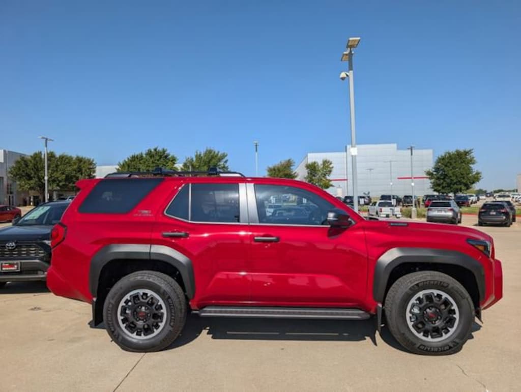 2.4L I4 FI Hybrid Turbocharged DOHC 16V.CALL OR TEXT US AT 214-544-8696 | Includes WIRELESS APPLE CARPLAY AND ANDROID AUTO, SATELLITE RADIO AND BLUETOOTH AUDIO STREAMING, AMAZON ALEXA, 2 USB CHARGE-PORTS, TOYOTA SAFETY SENSE, PRE-COLLISION SYSTEM, STAR SAFETY SYSTEM(VSC,TRAC,ABS,EBD,BA,SST), PRE-COLLISION SYSTEM w/ PEDESTRIAN DETECTION, DYNAMIC RADAR CRUISE CONTROL, LANE DEPARTURE ALERT WITH STEERING ASSIST, AUTOMATIC HIGH BEAMS, BLUETOOTH/HANDS FREE CELL PHONE, REAR BACKUP CAMERA, **2 YEARS FREE MAINTENANCE INCLUDED ON ALL NEW TOYOTAS**2025 Toyota 4Runner i-FORCE MAX Hybrid TRD Off Road Red 4WD 8-Speed Automatic
