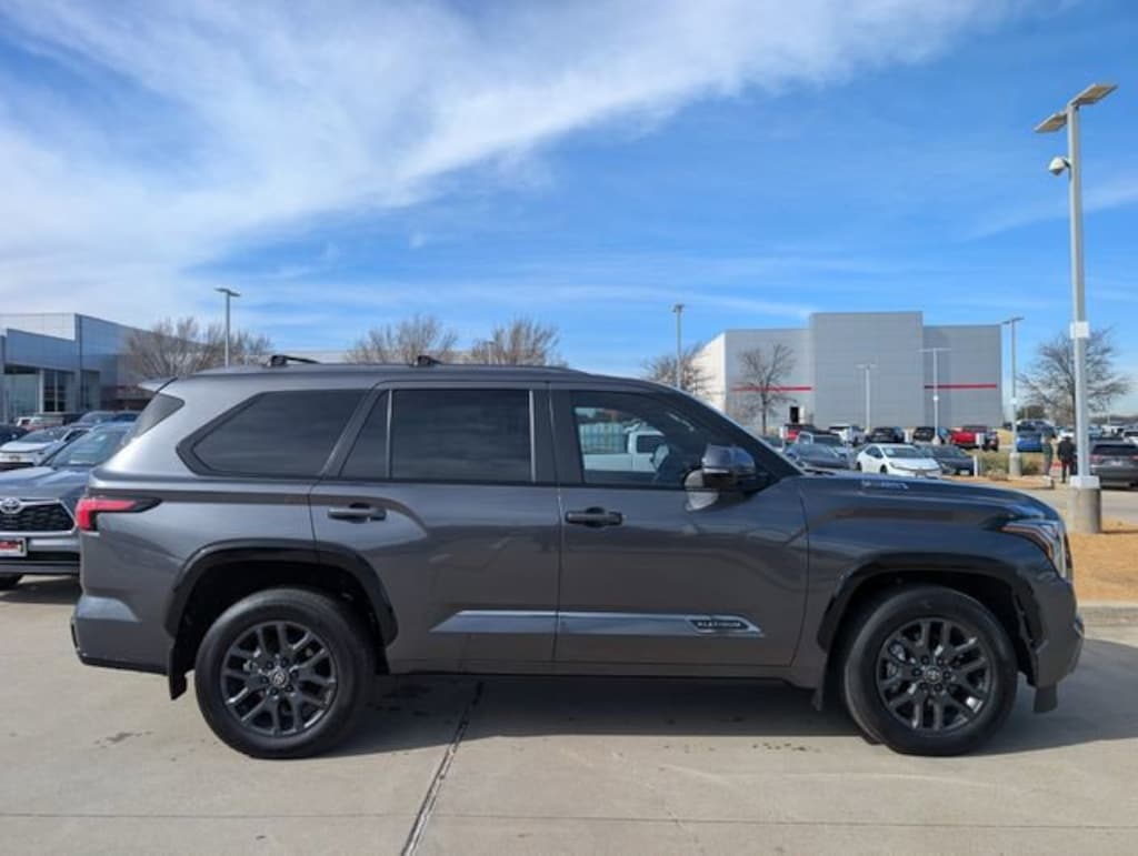 Includes WIRELESS APPLE CARPLAY AND ANDROID AUTO, SATELLITE RADIO AND BLUETOOTH AUDIO STREAMING, AMAZON ALEXA, 2 USB CHARGE-PORTS, TOYOTA SAFETY SENSE, PRE-COLLISION SYSTEM, STAR SAFETY SYSTEM(VSC,TRAC,ABS,EBD,BA,SST), PRE-COLLISION SYSTEM w/ PEDESTRIAN DETECTION, DYNAMIC RADAR CRUISE CONTROL, LANE DEPARTURE ALERT WITH STEERING ASSIST, AUTOMATIC HIGH BEAMS, BLUETOOTH/HANDS FREE CELL PHONE, REAR BACKUP CAMERA, **2 YEARS FREE MAINTENANCE INCLUDED ON ALL NEW TOYOTAS**2025 Toyota Sequoia Platinum Gray 4WD 10-Speed Automatic