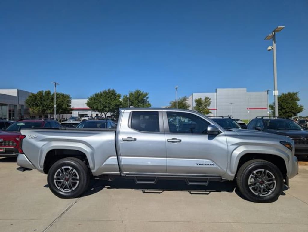 CALL OR TEXT US AT 214-544-8696 | Includes WIRELESS APPLE CARPLAY AND ANDROID AUTO, SATELLITE RADIO AND BLUETOOTH AUDIO STREAMING, AMAZON ALEXA, 2 USB CHARGE-PORTS, TOYOTA SAFETY SENSE, PRE-COLLISION SYSTEM, STAR SAFETY SYSTEM(VSC,TRAC,ABS,EBD,BA,SST), PRE-COLLISION SYSTEM w/ PEDESTRIAN DETECTION, DYNAMIC RADAR CRUISE CONTROL, LANE DEPARTURE ALERT WITH STEERING ASSIST, AUTOMATIC HIGH BEAMS, BLUETOOTH/HANDS FREE CELL PHONE, REAR BACKUP CAMERA, **2 YEARS FREE MAINTENANCE INCLUDED ON ALL NEW TOYOTAS**2025 Toyota Tacoma TRD Sport Silver RWD 8-Speed Automatic