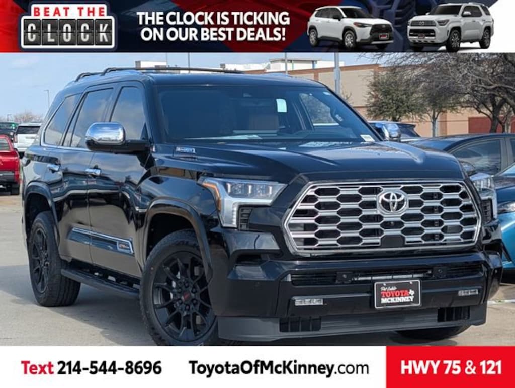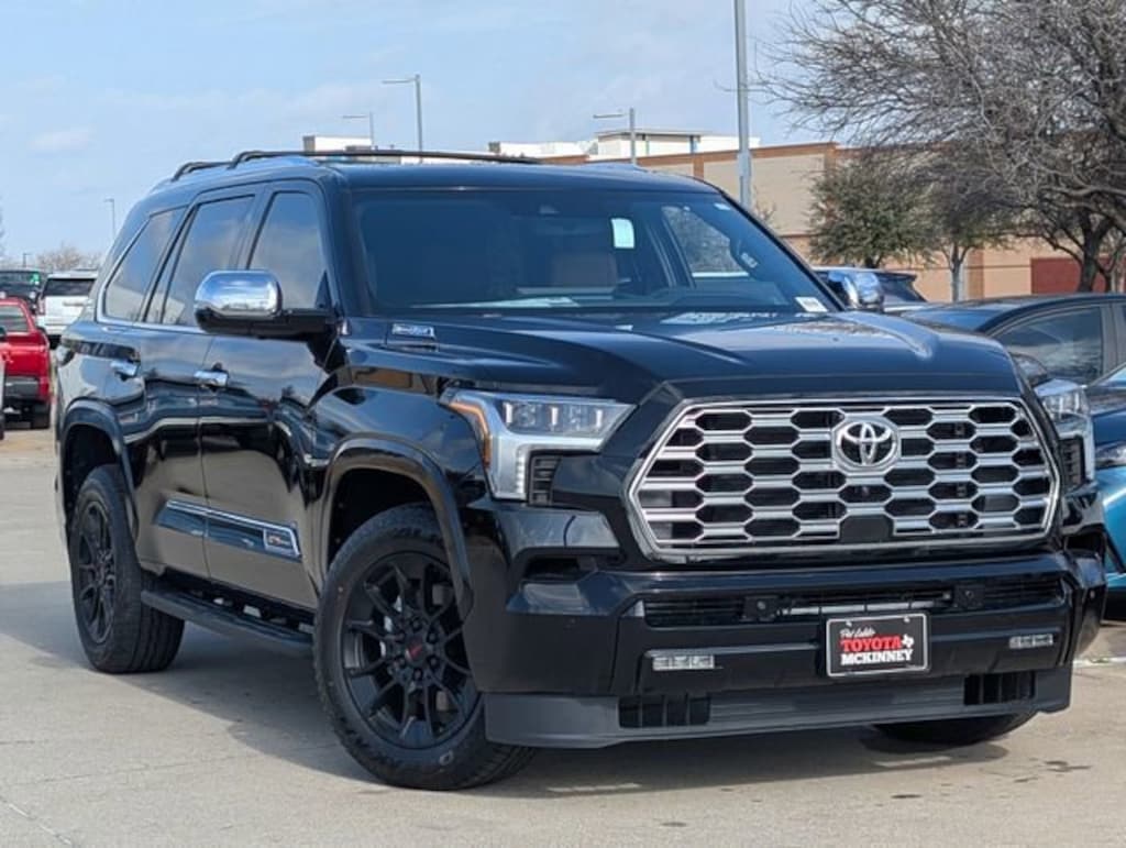 Includes WIRELESS APPLE CARPLAY AND ANDROID AUTO, SATELLITE RADIO AND BLUETOOTH AUDIO STREAMING, AMAZON ALEXA, 2 USB CHARGE-PORTS, TOYOTA SAFETY SENSE, PRE-COLLISION SYSTEM, STAR SAFETY SYSTEM(VSC,TRAC,ABS,EBD,BA,SST), PRE-COLLISION SYSTEM w/ PEDESTRIAN DETECTION, DYNAMIC RADAR CRUISE CONTROL, LANE DEPARTURE ALERT WITH STEERING ASSIST, AUTOMATIC HIGH BEAMS, BLUETOOTH/HANDS FREE CELL PHONE, REAR BACKUP CAMERA, **2 YEARS FREE MAINTENANCE INCLUDED ON ALL NEW TOYOTAS**2026 Toyota Sequoia 1794 Edition Midnight Black Metallic 4WD 10-Speed Automatic