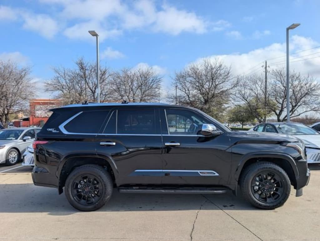 - Bright-chrome "sequoia" rear door badge, chrome "1794 edition" door badge and garnish, door handles, window molding and mirror caps; color-keyed tailgate spoiler; black-painted overfenders.