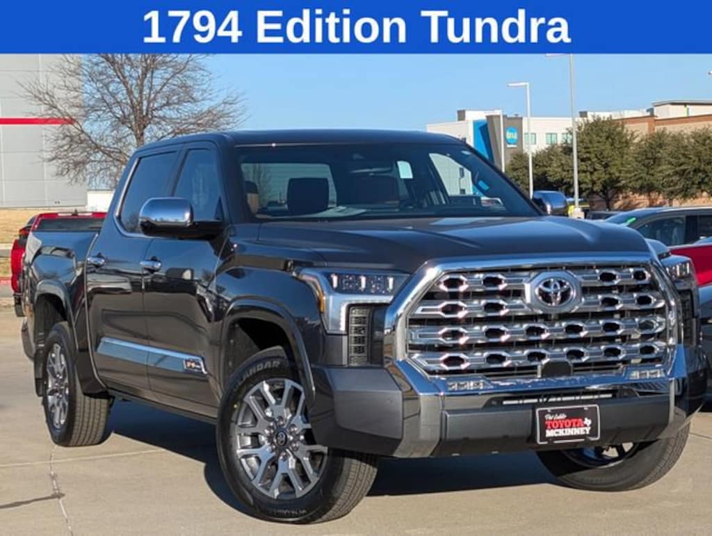 Includes WIRELESS APPLE CARPLAY AND ANDROID AUTO, SATELLITE RADIO AND BLUETOOTH AUDIO STREAMING, AMAZON ALEXA, 2 USB CHARGE-PORTS, TOYOTA SAFETY SENSE, PRE-COLLISION SYSTEM, STAR SAFETY SYSTEM(VSC,TRAC,ABS,EBD,BA,SST), PRE-COLLISION SYSTEM w/ PEDESTRIAN DETECTION, DYNAMIC RADAR CRUISE CONTROL, LANE DEPARTURE ALERT WITH STEERING ASSIST, AUTOMATIC HIGH BEAMS, BLUETOOTH/HANDS FREE CELL PHONE, REAR BACKUP CAMERA, **2 YEARS FREE MAINTENANCE INCLUDED ON ALL NEW TOYOTAS**2026 Toyota Tundra 1794 Magnetic Gray Metallic 4WD 10-Speed Automatic