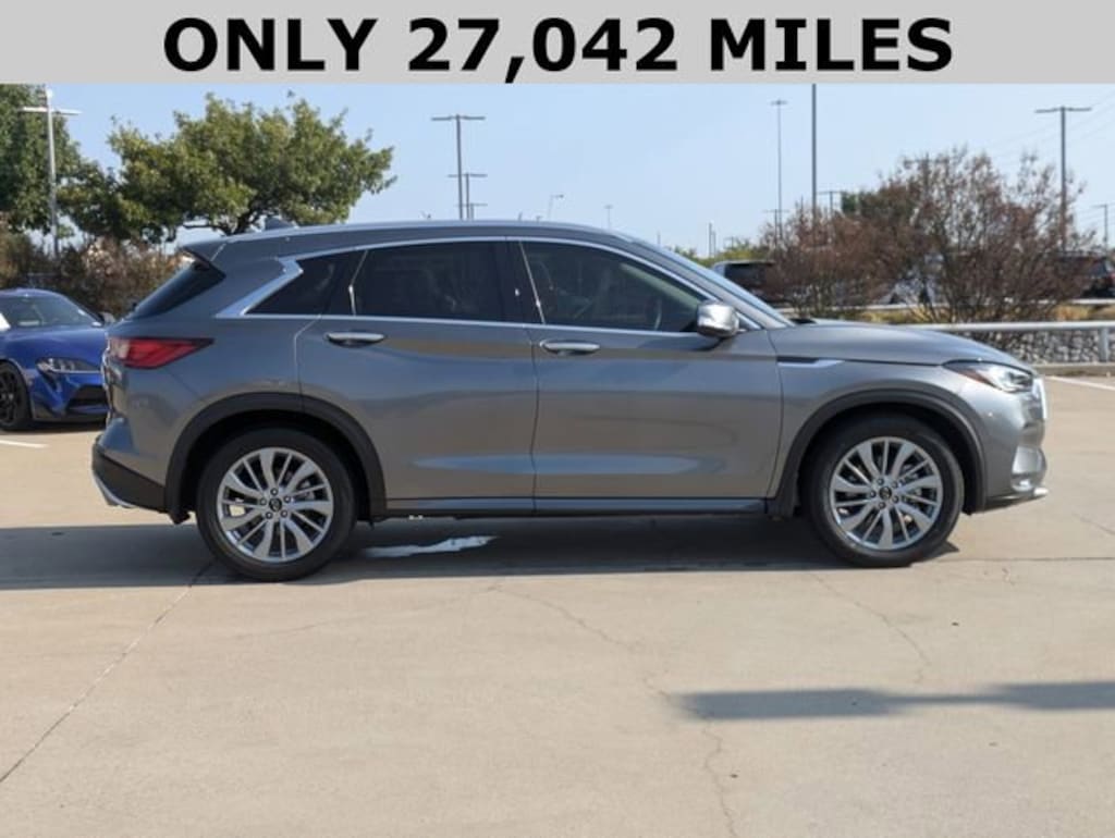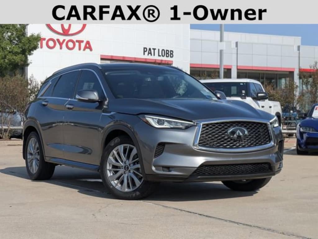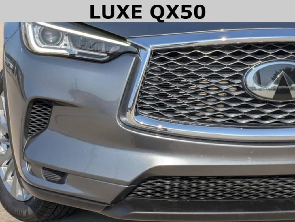 CARFAX One-Owner. Clean CARFAX. NEW ARRIVAL, WARRANTY--WARRANTY--WARRANTY INCLUDED!!!!, Priced for Quick Sale!!!!!, Visit https://www.toyotaofmckinney.com/incoming-vehicles.htm for others like it arriving soon, SUPER CLEAN, **APPLE CAR PLAY**, LEATHER/SOFTEX SEATING, PANORAMIC GLASS ROOF w/ SUNSHADE, **HEATED SEATS**, POWER LIFTGATE, **BLIND SPOT MONITOR w/ REAR CROSS TRAFFIC ALERT**, FRONT AND REAR PARKING SONAR, **SMART KEY SYSTEM w/ PUSH BUTTON START**, **LANE DEPARTURE ALERRT**, MULTI POINT INSPECTION, **BACK UP CAMERA**, **BLUETOOTH**, REMAINDER OF FACTORY WARRANTY, LOCAL TRADE, SERVICE RECORDS, PUSH BUTTON START, REMOTE START, FULL TANK OF GAS. Priced below KBB Fair Purchase Price! INFINITI QX50 2023 LUXE FWD I4 CVT Graphite Shadow