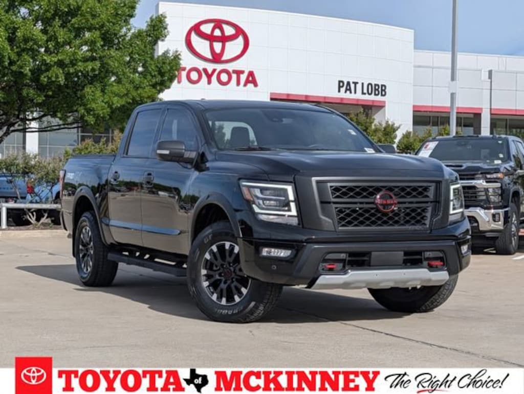 At Pat Lobb's Toyota of McKinney, buying a car is as easy as 1-2-3! We have been serving McKinney, Texas for several years! We invite our neighbors of Allen, Plano, Richardson, Dallas, Prosper, The Colony, Frisco and beyond for the best service, selection and deals in the D/FW area! PRO-4X Convenience Package (4-Way Power Assist Seat, Heated Driver & Passenger Seat, Heated Rear Seats, Heated Tilt/Telescoping Steering Wheel, Intelligent Around View Monitor (I-AVM), Leather Seat Trim, Memory Driver Seat w/Auto Entry/Exit Feature, Power Folding Auto Dimming Outside Mirrors, Proximity Activation, and Side Turn Signal Lamps on Mirror Housing), PRO-4X Moonroof Package (Driver & Passenger Ventilated Front Seats and Dual Panel Panoramic Moonroof w/Tilt & Slide), PRO-4X Utility Package (Fender Premium Audio System w/12 Speakers), 3.69 Axle Ratio, 4-Wheel Disc Brakes, 6 Speakers, ABS brakes, Air Conditioning, Alloy wheels, AM/FM radio: SiriusXM, Auto High-beam Headlights, Auto-dimming Rear-View mirror, Auto-leveling suspension, Automatic temperature control, Bed Assist Grip, Blind Spot Warning, Brake assist, Cloth Seat Trim w/Vinyl Bolsters, Compass, Delay-off headlights, Driver door bin, Driver vanity mirror, Dual front impact airbags, Dual front side impact airbags, Electronic Stability Control, Emergency communication system: NissanConnect Services, Front anti-roll bar, Front Bucket Seats, Front Captain's Seats, Front Center Armrest, Front dual zone A/C, Front fog lights, Front reading lights, Front wheel independent suspension, Fully automatic headlights, Garage door transmitter: HomeLink, Heated door mirrors, Illuminated entry, Knee airbag, Leather steering wheel, Low tire pressure warning, Navigation system: NissanConnect Navigation, Outside temperature display, Overhead airbag, Overhead console, Panic alarm, Passenger Airbag Sensor, Passenger door bin, Passenger vanity mirror, Power door mirrors, Power driver seat, Power steering, Power windows, PRO-4X Badged Floor Mats, PRO-4X Illuminated Kick Plate, PRO-4X Mud Flaps, PRO-4X Rugged Step Boards, Radio data system, Radio: NissanConnect w/Navigation, Rain sensing wipers, Rear anti-roll bar, Rear Bumper Step w/Electronic Tailgate Lock, Rear Parking Sensors, Rear reading lights, Rear seat center armrest, Rear step bumper, Rear Underseat Storage, Rear window defroster, Remote keyless entry, Security system, Speed control, Speed-sensing steering, Speed-Sensitive Wipers, Split folding rear seat, Steering wheel mounted audio controls, Tachometer, Telescoping steering wheel, Tilt steering wheel, Traction control, Trip computer, Variably intermittent wipers, Voltmeter, and Wheels: 18" x 8" Painted Dark Finish Alloy.
