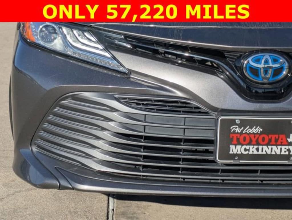 The exterior of this Camry Hybrid is finished in a sleek Gray color, complemented by 18-inch chrome-machined alloy wheels that give it a distinctive and stylish appearance. The body-color bumpers and heated, power-adjustable side mirrors further enhance the vehicle's refined and modern aesthetic.
