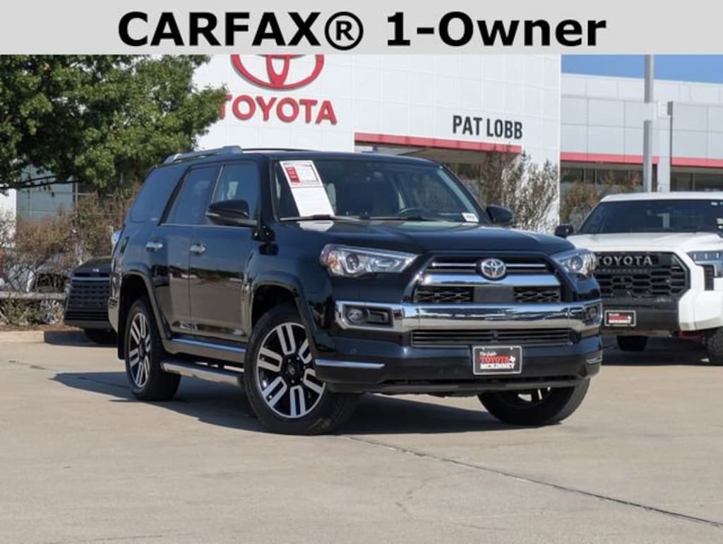 CARFAX One-Owner. Clean CARFAX. NEW ARRIVAL, WARRANTY--WARRANTY--WARRANTY INCLUDED!!!!, Priced for Quick Sale!!!!!, Visit https://www.toyotaofmckinney.com/incoming-vehicles.htm for others like it arriving soon, SUPER CLEAN, 4WD, **APPLE CAR PLAY**, LEATHER/SOFTEX SEATING, **NAVIGATION/GPS**, **SUN ROOF/MOON ROOF**, **VENTILATED SEATS**, **HEATED SEATS**, MEMORY SEATS, **HEATED STEERING WHEEL**, WIRELESS CHARGING, POWER LIFTGATE, **BLIND SPOT MONITOR w/ REAR CROSS TRAFFIC ALERT**, FRONT AND REAR PARKING SONAR, **SMART KEY SYSTEM w/ PUSH BUTTON START**, **LANE DEPARTURE ALERRT**, RUNNING BOARDS, MULTI POINT INSPECTION, **BACK UP CAMERA**, **BLUETOOTH**, REMAINDER OF FACTORY WARRANTY, LOCAL TRADE, SERVICE RECORDS, PUSH BUTTON START, REMOTE START, FULL TANK OF GAS, 4WD, Graphite Leather. Priced below KBB Fair Purchase Price! Toyota 4Runner 2023 Limited 4WD 4.0L V6 DOHC 24V 5-Speed with ECT Midnight Black