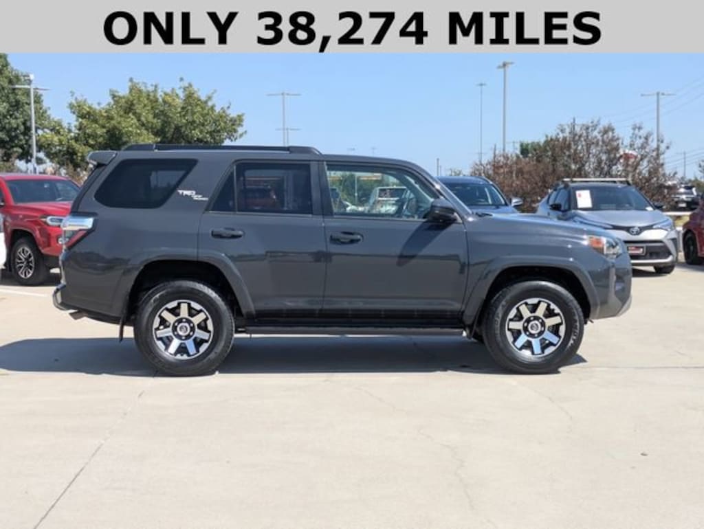 At Pat Lobb's Toyota of McKinney, buying a car is as easy as 1-2-3! We have been serving McKinney, Texas for several years! We invite our neighbors of Allen, Plano, Richardson, Dallas, Prosper, The Colony, Frisco and beyond for the best service, selection and deals in the D/FW area! Off Road Package (Black Roof Rails), 4WD, Graphite Cloth, 3.727 Axle Ratio, 4-Wheel Disc Brakes, 8 Speakers, ABS brakes, Air Conditioning, Alloy wheels, AM/FM radio: SiriusXM, Anti-whiplash front head restraints, Apple CarPlay/Android Auto, Auto High-beam Headlights, Brake assist, Bumpers: body-color, Compass, Driver door bin, Driver vanity mirror, Dual front impact airbags, Dual front side impact airbags, Electronic Stability Control, Emergency communication system: Safety Connect (1-year trial), Exterior Parking Camera Rear, Fabric Seat Trim, Front anti-roll bar, Front Bucket Seats, Front Center Armrest, Front fog lights, Front reading lights, Front wheel independent suspension, Heated door mirrors, Illuminated entry, Knee airbag, Leather Shift Knob, Low tire pressure warning, Outside temperature display, Overhead airbag, Overhead console, Panic alarm, Passenger Airbag Sensor, Passenger door bin, Passenger vanity mirror, Power door mirrors, Power driver seat, Power steering, Power windows, Radio: Audio Plus, Rear anti-roll bar, Rear seat center armrest, Rear window defroster, Rear window wiper, Remote keyless entry, Rigid Running Boards, Security system, Speed control, Speed-sensing steering, Split folding rear seat, Spoiler, Steering wheel mounted audio controls, Tachometer, Telescoping steering wheel, Tilt steering wheel, Traction control, Trip computer, Variably intermittent wipers, and Wheels: 17" Unique 7-Spoke Off-Road Alloy.