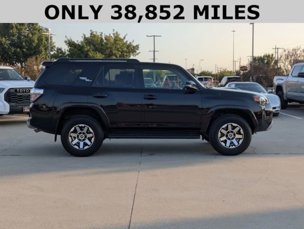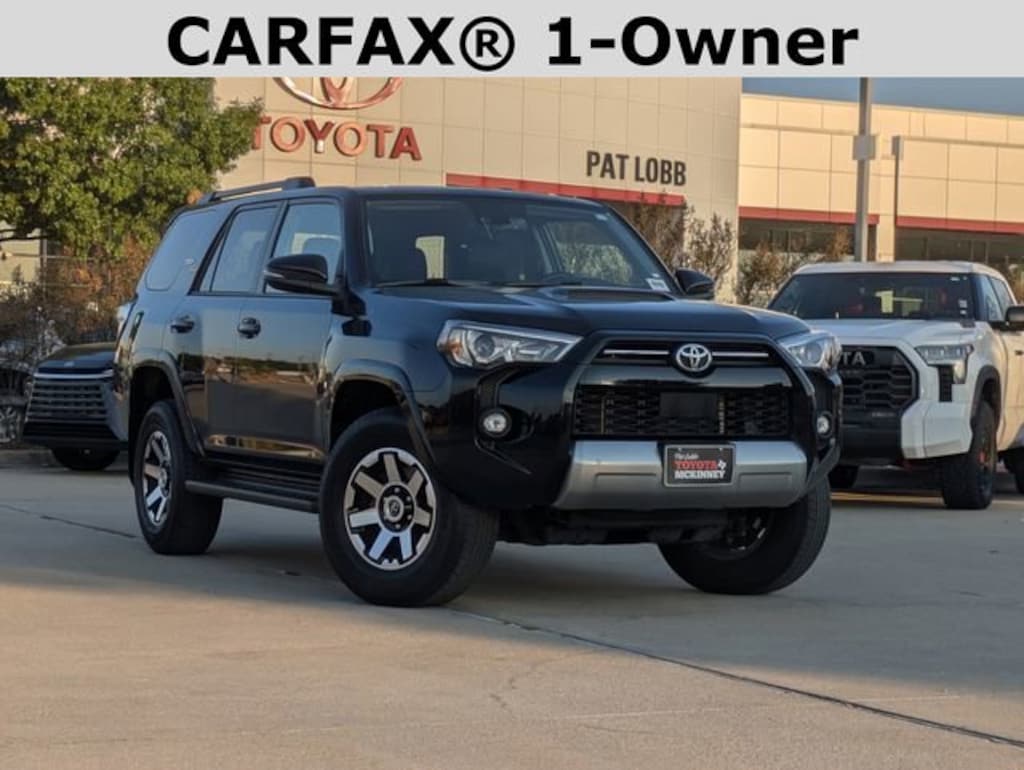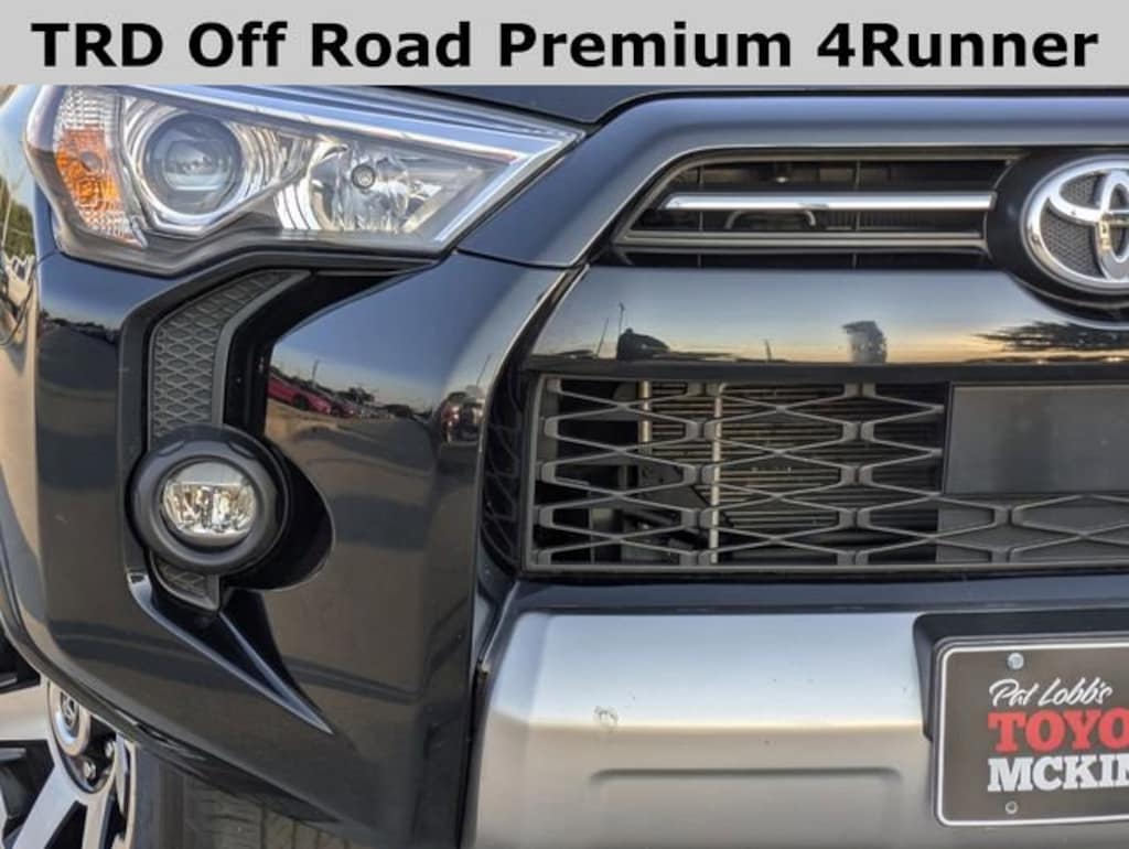 At Pat Lobb's Toyota of McKinney, buying a car is as easy as 1-2-3! We have been serving McKinney, Texas for several years! We invite our neighbors of Allen, Plano, Richardson, Dallas, Prosper, The Colony, Frisco and beyond for the best service, selection and deals in the D/FW area! Off Road Package (Black Roof Rails and Heated Outside Rear-View Mirrors), Off Road Premium Package (Garage Door Opener), 4WD, Black/Graphite w/SofTex Seat Trim, Alloy wheels, Auto High-beam Headlights, Exterior Parking Camera Rear, Front fog lights, Low tire pressure warning, Navigation System, Panic alarm, Security system, Speed-sensing steering, Traction control, 3.727 Axle Ratio, 4-Wheel Disc Brakes, 8 Speakers, ABS brakes, Air Conditioning, AM/FM radio: SiriusXM, Anti-whiplash front head restraints, Apple CarPlay/Android Auto, Auto-dimming Rear-View mirror, Brake assist, Bumpers: body-color, Compass, Driver door bin, Driver vanity mirror, Dual front impact airbags, Dual front side impact airbags, Electronic Stability Control, Emergency communication system: Safety Connect (1-year trial), Front anti-roll bar, Front Bucket Seats, Front Center Armrest, Front reading lights, Front wheel independent suspension, Garage door transmitter: HomeLink, Heated door mirrors, Heated Front Bucket Seats, Heated front seats, Heated steering wheel, Illuminated entry, Knee airbag, Leather Shift Knob, Outside temperature display, Overhead airbag, Overhead console, Passenger Airbag Sensor, Passenger door bin, Passenger vanity mirror, Power door mirrors, Power driver seat, Power passenger seat, Power steering, Power windows, Radio: Premium Audio, Rear anti-roll bar, Rear seat center armrest, Rear window defroster, Rear window wiper, Remote keyless entry, Rigid Running Boards, SofTex Seat Trim, Speed control, Split folding rear seat, Spoiler, Steering wheel mounted audio controls, Tachometer, Telescoping steering wheel, Tilt steering wheel, Trip computer, Turn signal indicator mirrors, Variably intermittent wipers, and Wheels: 17" Unique 7-Spoke Off-Road Alloy.