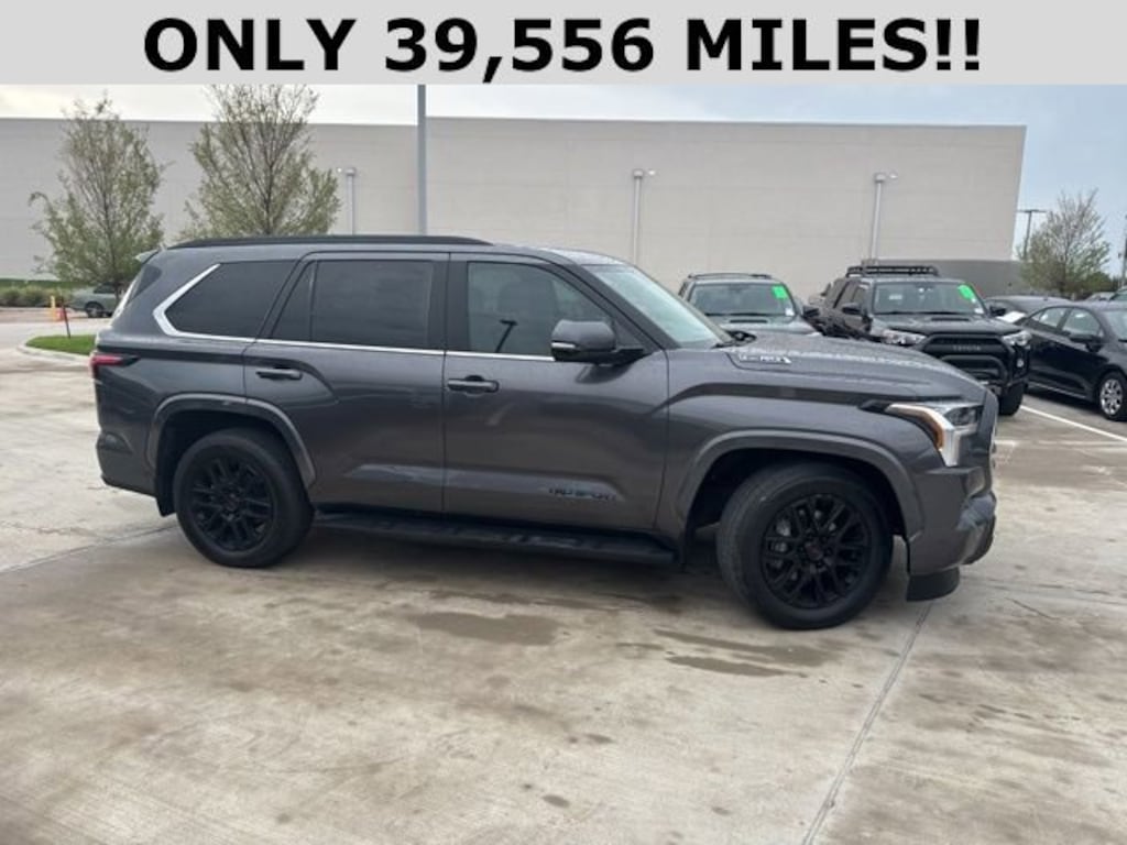 At Pat Lobb's Toyota of McKinney, buying a car is as easy as 1-2-3! We have been serving McKinney, Texas for several years! We invite our neighbors of Allen, Plano, Richardson, Dallas, Prosper, The Colony, Frisco and beyond for the best service, selection and deals in the D/FW area! SR5 Premium Package (400W/120V AC Rear Seat & Cargo Area Power Outlet, Radio: Toyota Multimedia w/14" Display, and SofTex Seat Trim), Tow Technology Package, TRD Sport Package (Wheels: 20" TRD Sport Matte-Black Alloy), V6 Hybrid, 10-Speed Automatic, 4WD, 3.31 Axle Ratio, 3rd row seats: split-bench, 4-Wheel Disc Brakes, 8 Speakers, ABS brakes, Air Conditioning, All-Weather Liners/Cargo Mat (TMS), Alloy wheels, AM/FM radio: SiriusXM, Anti-whiplash front head restraints, Apple CarPlay/Android Auto, Auto High-beam Headlights, Auto-dimming door mirrors, Auto-dimming Rear-View mirror, Automatic temperature control, Brake assist, Bumpers: body-color, Delay-off headlights, Door Edge Guard (TMS), Driver door bin, Driver vanity mirror, Dual front impact airbags, Dual front side impact airbags, Electronic Stability Control, Emergency communication system: Safety Connect (10-year trial), Exterior Parking Camera Rear, Fabric Seat Trim, Front anti-roll bar, Front Bucket Seats, Front Center Armrest w/Storage, Front dual zone A/C, Front fog lights, Front reading lights, Front wheel independent suspension, Fully automatic headlights, Garage door transmitter, Headlight cleaning, Heated door mirrors, Heated Front Seats, Heated front seats, Heated Leather Steering Wheel, Illuminated entry, Knee airbag, Leather Shift Knob, Leather steering wheel, Low tire pressure warning, Outside temperature display, Overhead airbag, Overhead console, Panic alarm, Passenger Airbag Sensor, Passenger door bin, Passenger vanity mirror, Power door mirrors, Power driver seat, Power moonroof, Power passenger seat, Power steering, Power windows, Radio: Toyota Multimedia w/8" Display, Rear air conditioning, Rear reading lights, Rear seat center armrest, Rear window defroster, Rear window wiper, Reclining 3rd row seat, Remote keyless entry, Security system, Speed control, Speed-sensing steering, Split folding rear seat, Spoiler, Steering wheel mounted audio controls, Tachometer, Telescoping steering wheel, Tilt steering wheel, Traction control, Trip computer, Turn signal indicator mirrors, Variably intermittent wipers, Voltmeter, Wheel Locks (TMS), and Wheels: 18" Styled-Alloy.